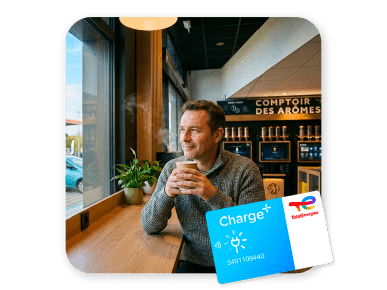 ** Offre réservée aux abonnés de l’option Charge+ Zen et conditionnée à l’adhésion au programme de fidélité Club de TotalEnergies et à l’association préalable de la carte Charge+ au compte fidélité. L’offre permet de bénéficier de 2€ de crédit utilisables dans les espaces « Comptoir des Arômes » ; 2€ offerts dès la souscription de l’option puis, 2€ offerts toute recharge d’au moins 20 kWh effectuée avec la carte Charge+ sur les bornes haute puissance à la marque TotalEnergies et dans les stations TotalEnergies équipées d’un « Comptoir des Arômes ». Offre limitée à un seul crédit par jour. Le client devra se présenter en caisse pour faire créditer l’offre sur sa carte Club ou sa carte Coffee Comptoir des Arômes. Voir conditions et liste des stations éligibles sur chargeplus.totalenergies.com/fr.